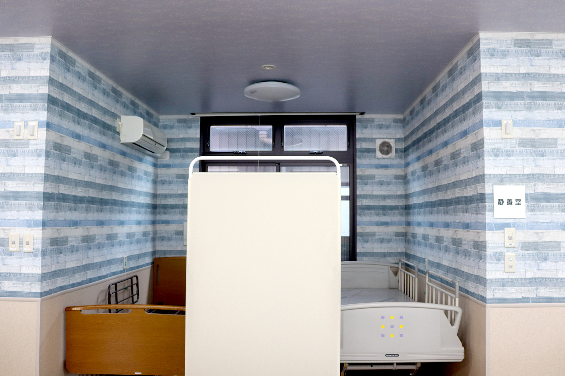 休んでいただくベッドのスペースをご用意しています。また看護師が複数名常駐しておりますので、体調の変化に応じて素早く対応しています。